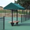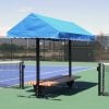 The 8’ Covered Cabana Bench is an attractive way to improve the look and functionality of your tennis or pickleball court. The standard size awning is 6’ wide x 8’ long but is also available in 8’ wide x 8’ long (upcharge) and 4’ wide x 8’ long (so the unit can be placed against a fence).