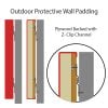 Padding panels are custom fabricated with 3” thick polyurethane high-impact foam and ¾” marine grade plywood. The mildew resistant foam and exterior grade plywood is encased in durable 18 oz vinyl that is UV resistant and made for all locations and weather conditions. Choose from standard colors dark green, black, royal blue, navy, red, maroon, purple, gray, and yellow. Additional colors are available by request.