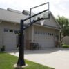 Our durable, unobstructed “clear view” tempered glass backboard has an aluminum perimeter frame supported by a welded steel back frame. This combination allows for a very rigid playing experience and maximum ball response. Unlike traditional “H Frame” backboard supports, the reinforced galvanized steel extension arms attach directly to the perimeter frame, allowing for the preferred, professional “clear view” appearance. The 645 Model has a 42″ x 60″ tempered glass board that is a full ½” thick. Plus, we’ve pre-installed black, one-inch thick molded vinyl backboard padding to give you the best playing experience. Ever.
