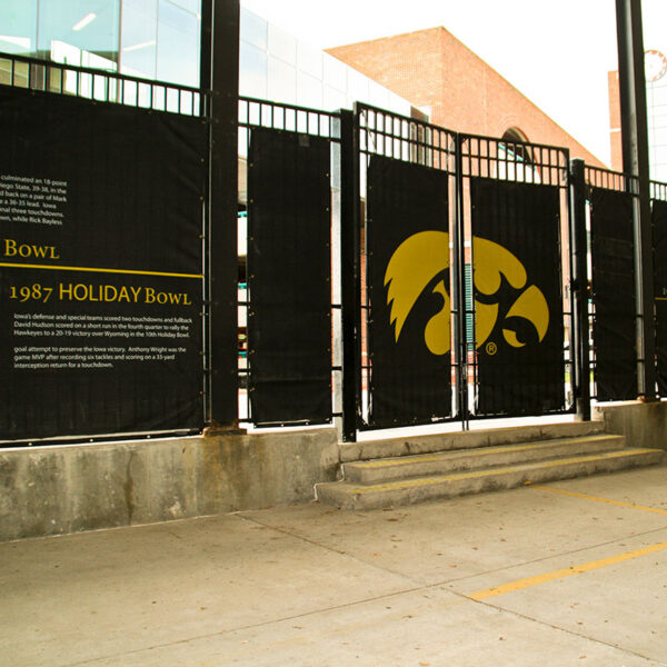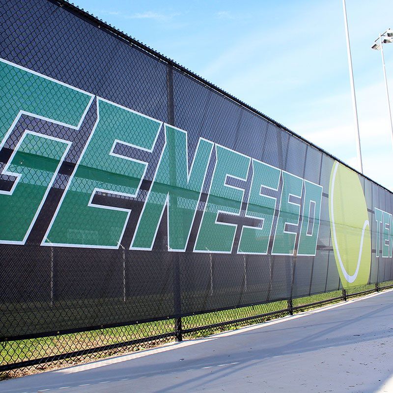 Our elite printing process allows us to print directly on your material so there’s no white back side like other digital printing companies. With the use of quality long lasting UV inks, your printing and logos become part of the material. The UV resistant inks keep their vibrancy for years and no extra coating is needed. Your investment will not crack, peel, or tear like alternative vinyl decals. Our advanced digital printing technology allows for more detailed multi-color capabilities and has a quick turnaround and greater accuracy. When you add custom printing to our fence screen materials your screen will still have the same color on the backside of the screen. In some circumstances, if you require a “full flood” digital print to achieve your desired visual outcome your fence screen could have a white backside. Our customer service team will discuss this when ordering.