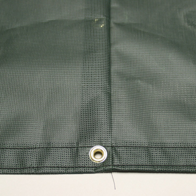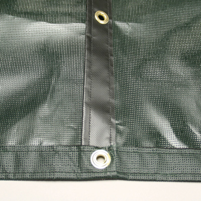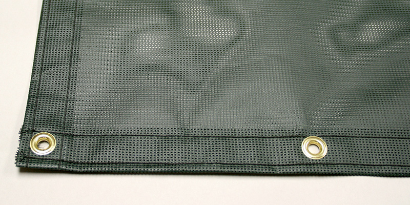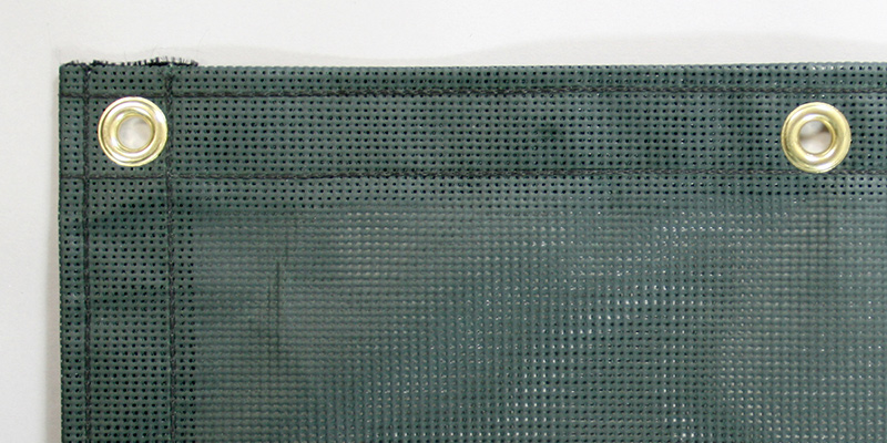 VCP windscreen material is hemmed with Douglas’s 3-ply extra-strong hems. These durable hems are seemed with solid vinyl inserts that are double sewn to 1-1/2 inches wide. The #2 brass grommets are spaced every 12 inches on panel sides and every 18 inches along the top and bottom.