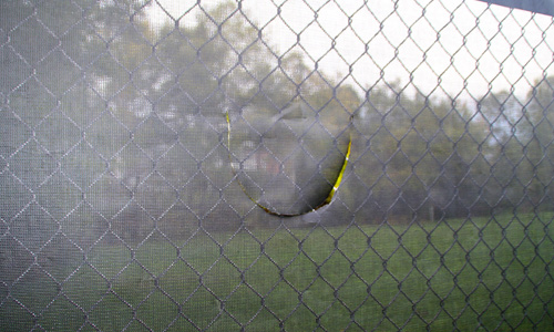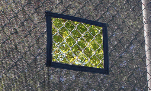 When installing windscreens, center reinforcement is recommended for anti-billowing on all panels that are taller than 6 ft and where strong winds prevail. Center reinforcement allows the screen to be secured to the middle of the fence with tie wraps or lacing cord attachment. All Sport Screens by Douglas® over 6 ft in height include a center tab with grommets. Center tabs on Vinyl Coated Polyester are sewn with 18 oz. black vinyl and grommets are placed every 18 inches to secure the screen to the fence. The reinforcement tab is only visible on the backside of the fence screen for a cleaner installed appearance.