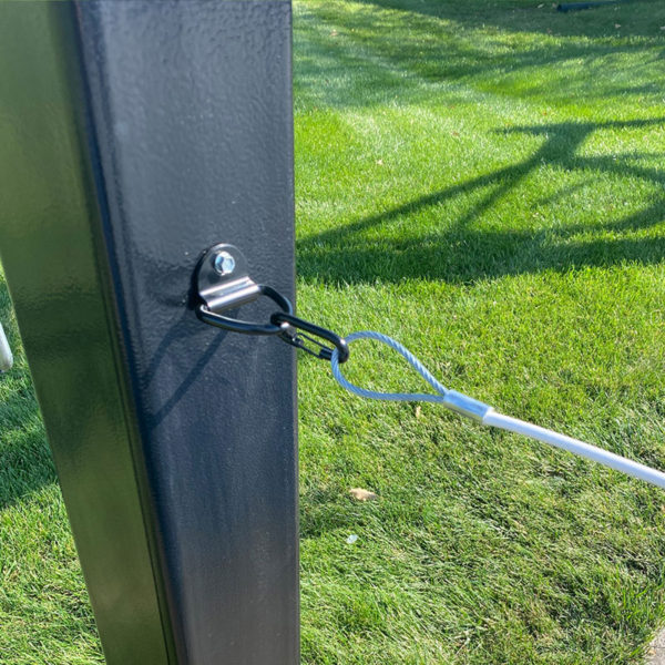 The adjustable Unicourt™ net is sold separately. The net is 34″ in height and is available in (4) standard lengths or made to your custom size. The length of the net should be 4′ shorter than the post spacing, leaving a 2′ gap on either side of the net.