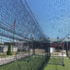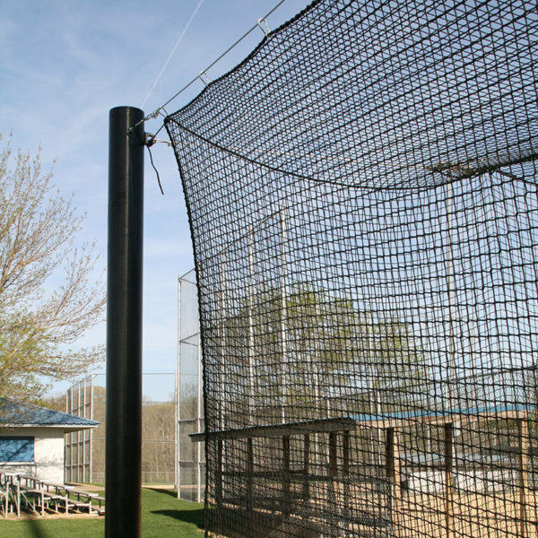 The frame consists of massive 16′ direct bury, heavy-duty steel poles that are 8-5/8″ OD with a 0.322″ wall thickness. The poles are coated with a durable black powder coat finish for maximum protection and weather resistance. They are installed 4′ deep, allowing a maximum installed net height of 11’6″. Welded steel tabs are placed at the top of each pole to secure the net cable tensioning system. Frame poles are installed at the desired tunnel net width and at least 5′ longer for the length.