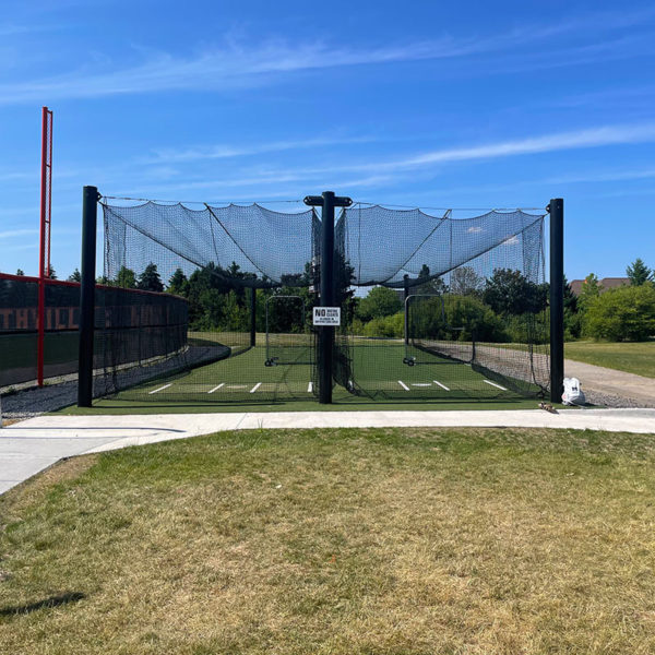 Fewer poles mean less interference and ball ricocheting during practice. The double frame system is installed with a shared-pole multiple cage design setup. This shared pole design can be set up as a triple, quadruple, or custom layout.