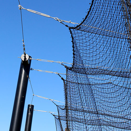 The tension cable support system consists of 1/4” galvanized aircraft cable with a 6,100 lb. break strength. Three tension cables are ran the length of the tunnel to support the net. All net-to-cable connections are constructed from long lasting steel. All of the necessary hardware components including quick links, turnbuckles, cable clamps and carabiner clips are provided. Batting tunnel nets are sold separately – choose the size that suits your needs best.