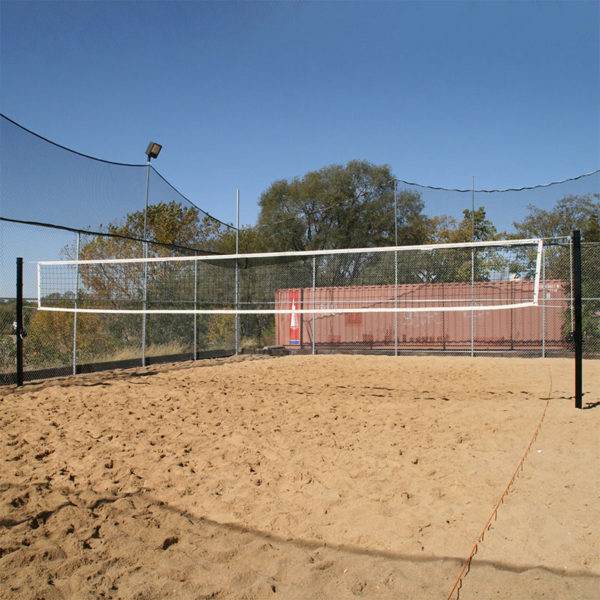 - 36″ Long steel ground sleeves with collars (GS-36SQ) are used for sand volleyball installation.
